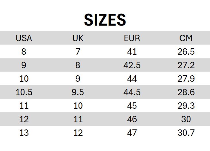 41, 44, 45, 46, 47, US10, US11, US12, US8, US9, 42.5, 44.5, US10.5, US13
